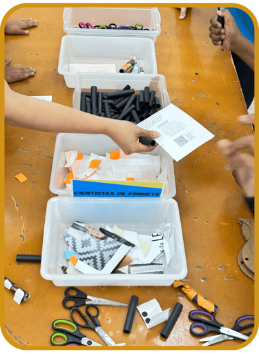 Nesta oficina, adultos e crianças são convidados a se tornarem cientistas de foguetes. A partir de materiais simples, os participantes podem desenvolver seus projetos que serão imaginados, criados, testados, e compartilhados. Uma divertida oportunidade para espalhar o brincar e lançar foguetes pelos diferentes espaços da unidade e além.